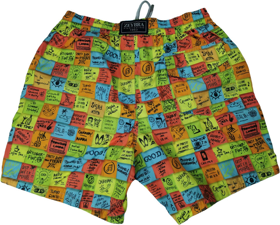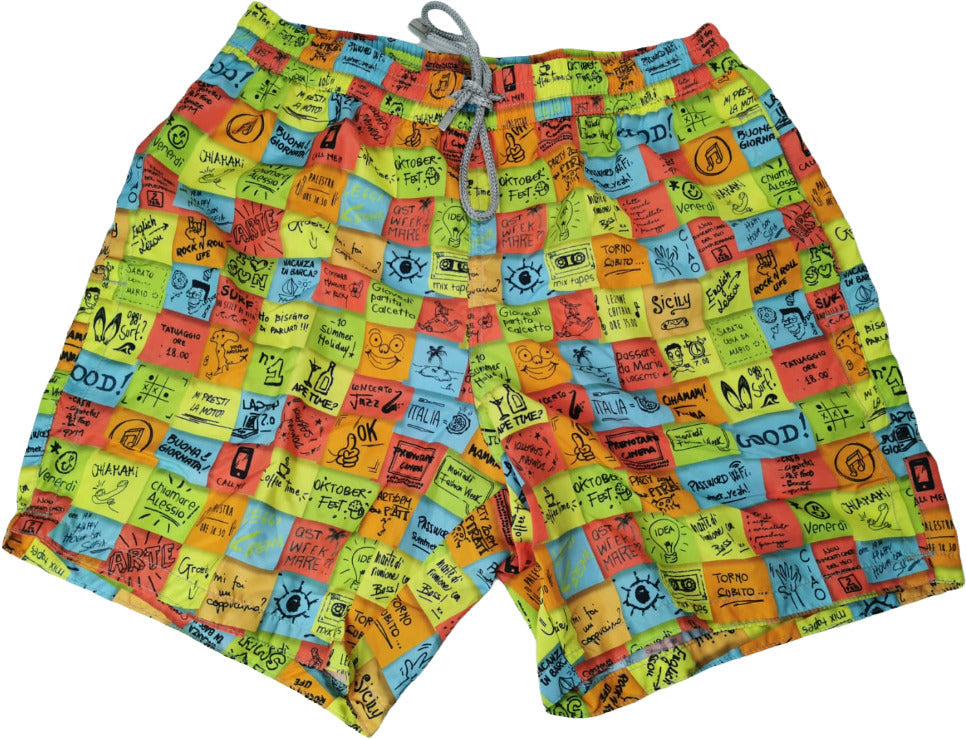 Zeybra Portofino 1962 Men's Swim Trunks - Post-it Design - Multicolor Fluorescent Yellow