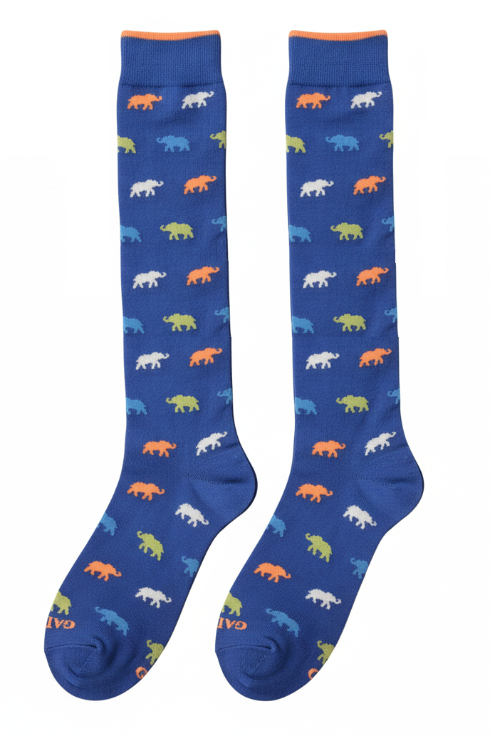Calze lunghe Uomo - Gallo - Fantasia elefanti - blu