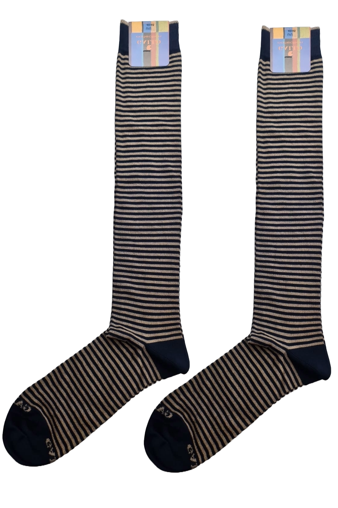 Men's Long Socks - Gallo - Two-Tone Blue/Beige Striped Pattern