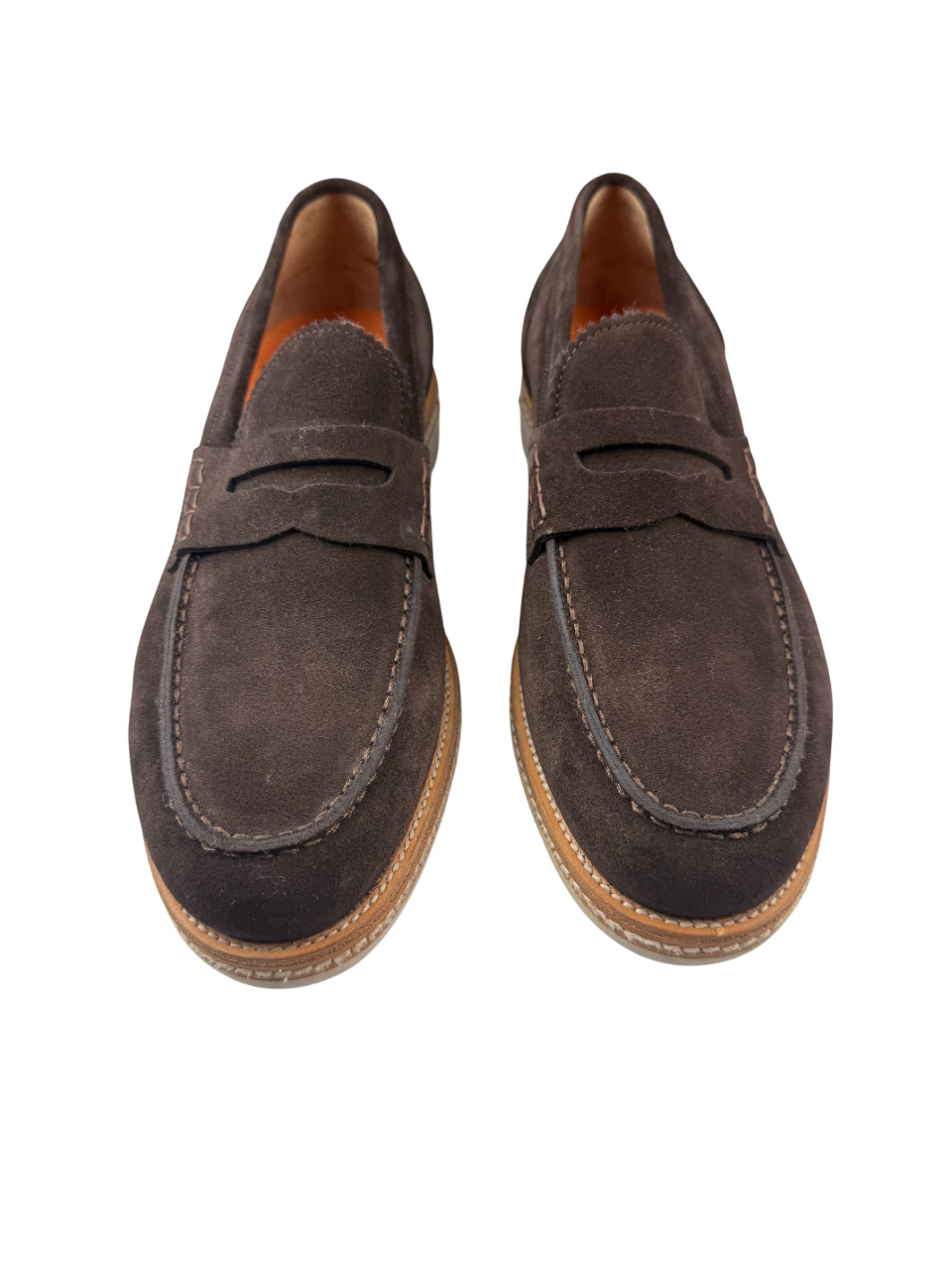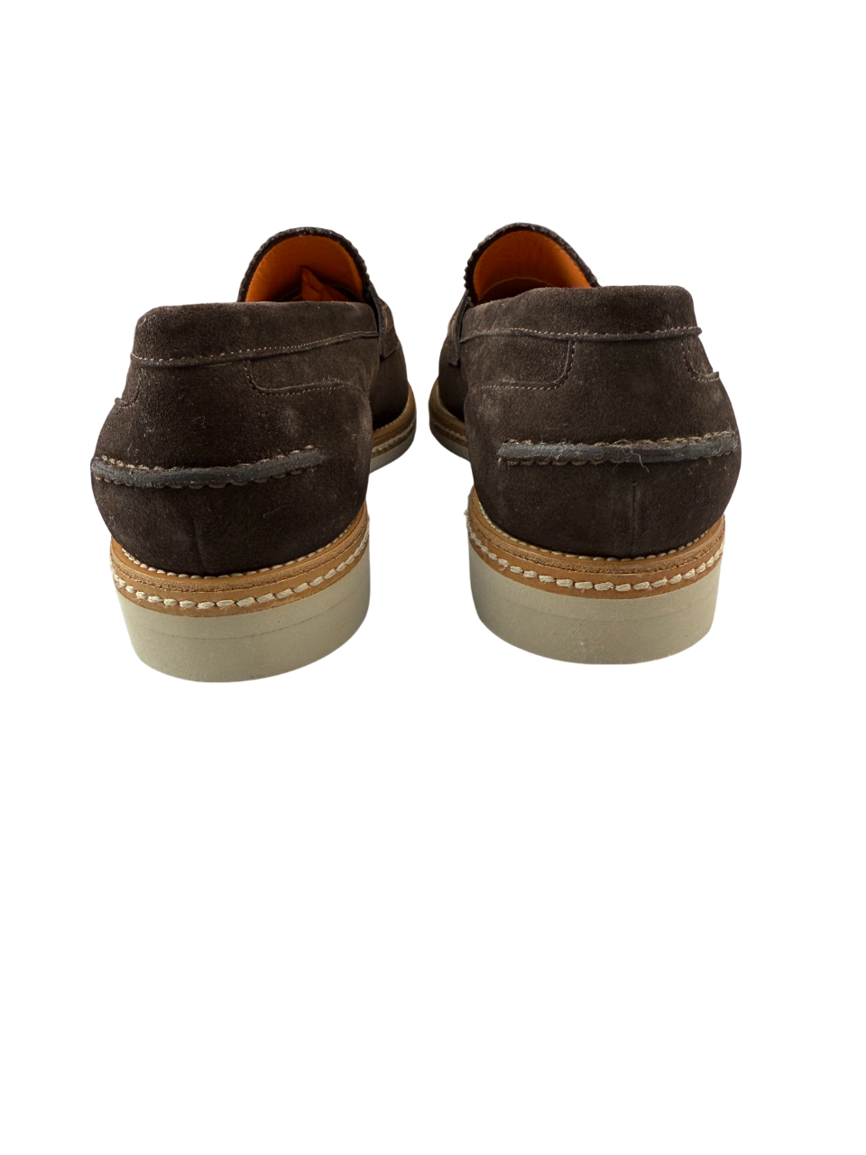 La combinazione di camoscio pregiato, suola naturale e la caratteristica fodera colorata rappresentano la firma distintiva di Santoni, marchio sinonimo di eccellenza calzaturiera italiana e comfort superiore.