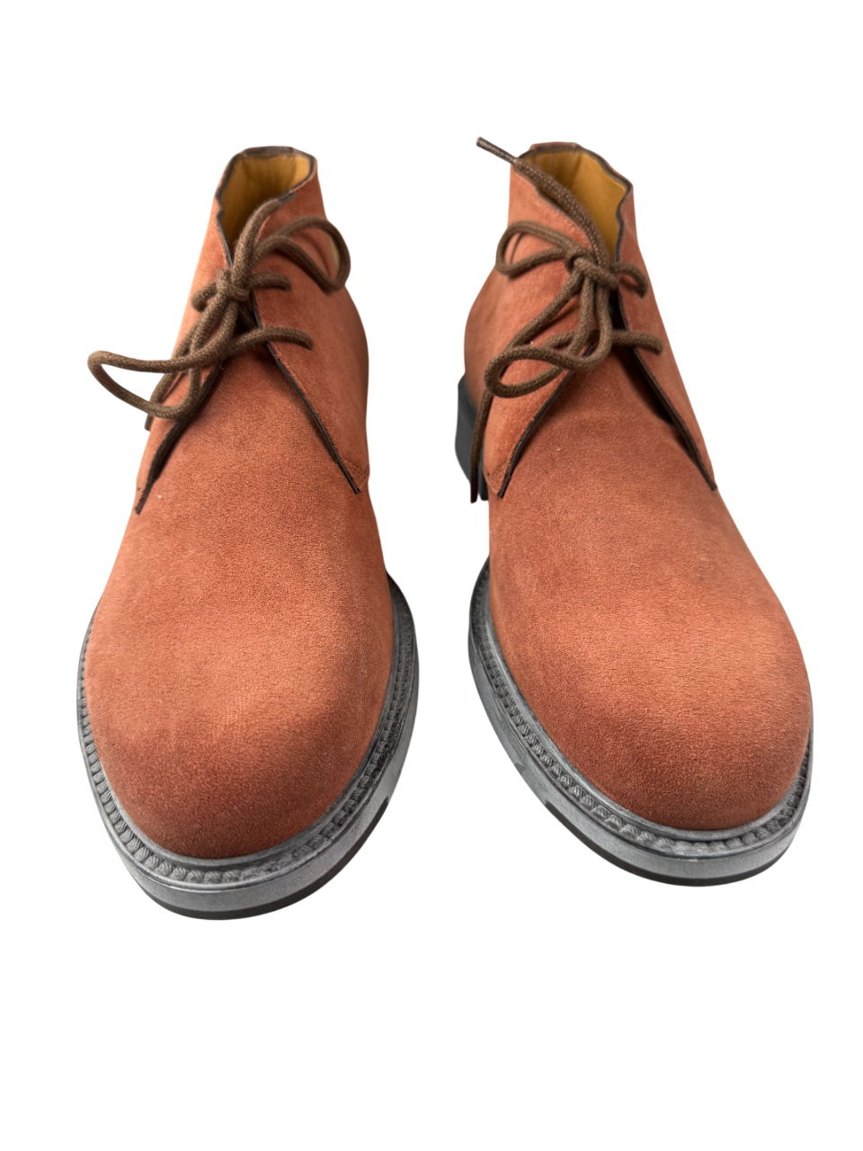 Le polacchine Santoni in pelle scamosciata color mattone incarnano l'essenza dello stile italiano contemporaneo. Realizzate con maestria artigianale marchigiana, queste calzature trasformano ogni outfit autunno-inverno in un'affermazione di carattere e raffinatezza.