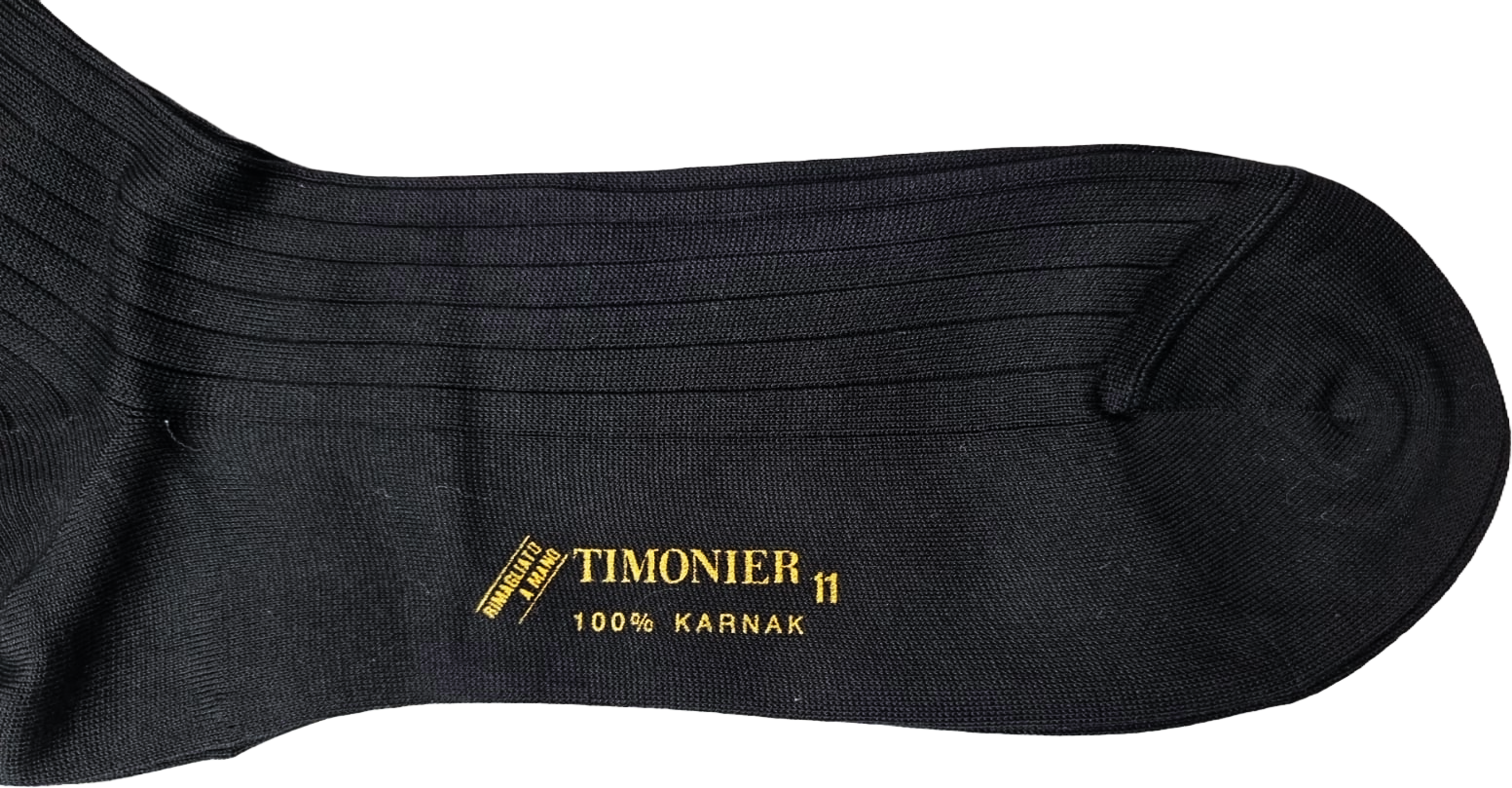 Calze Lunghe Uomo Timonier - A Coste Nero Tinta Unita - Cotone Karnak 100% Egiziano